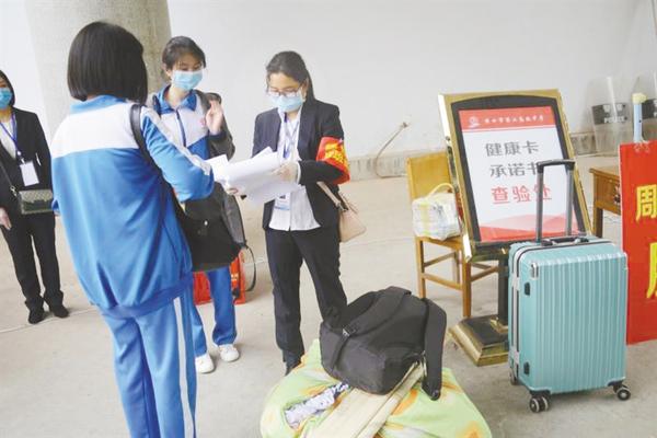 4月20日6時50分,記者在周口四中門口看到,學生們在家長的陪伴下陸續趕來,按照學校提前下發的入校流程,在校門口間隔一米距離有序排隊。然后,他們按規定依次遞交健康承諾表后,在值班教師的引導下,通過大門兩側設置的體溫測試通道入校,每個通道處都有工作人員負責引導學生、噴灑消毒液。