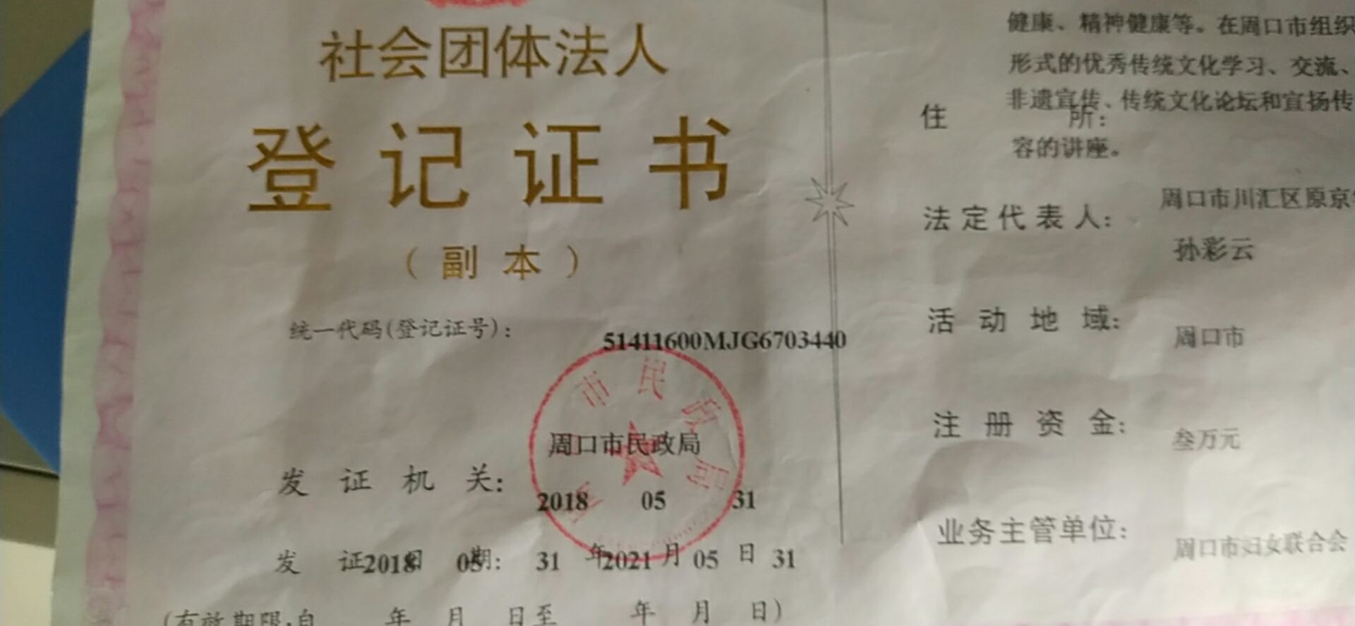 當孫彩云把成立志愿者團體的想法在微信群里公布后,得到了群友們的積極響應。可民間志愿團體只有熱情是不夠的,憑著不達目的誓不罷休的性格,孫彩云一家家尋找掛靠單位,功夫不負有心人,她的毅力感動了周口市婦聯。在市婦聯的支持下,2017年4月28日,組織定名“周口市慈孝文化促進會”,同年5月8日,首次護河行動在大鐵牛下舉行,成為守護母親河的起點。2018年5月31日,周口市民政局批示下發“社會團體法人登記證書”,慈孝文化促進會正式成為國家注冊社會組織。
