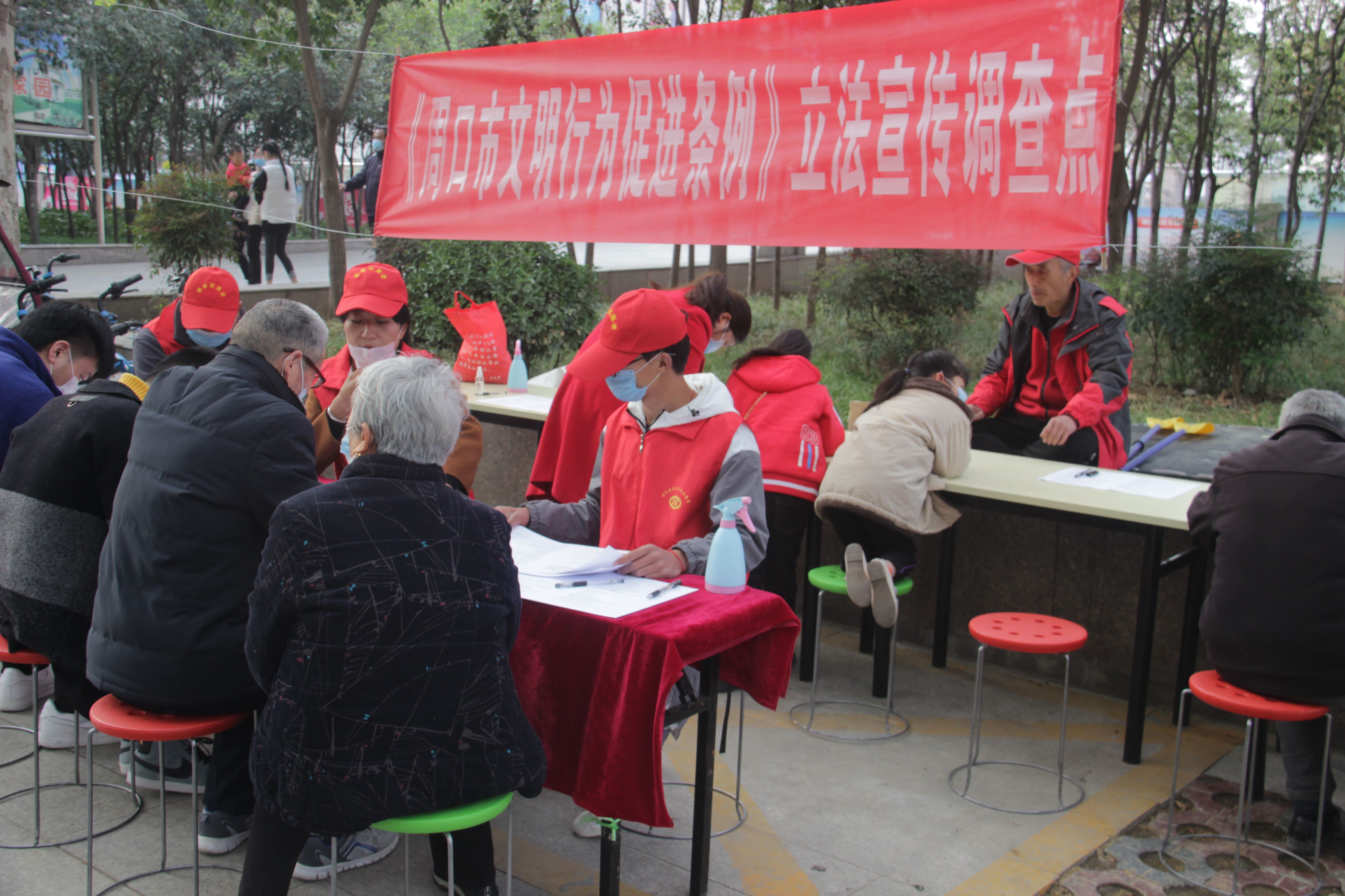 說著,孫彩云帶領記者走進《周口市文明行為促進條例》調查問卷棚。“我們今天上午在五一廣場做問卷調查,收了300多份,下午轉移到這里,這兩個淮陽來的大學生全程跟著。”兩名女大學生看著記者,帶著口罩,雙眼彎彎不擋笑意,她們說:“我們是在海南上的大學,很喜歡參加志愿者活動,這不因為疫情現在還沒開學嗎,在網上查到慈孝文化這個組織就來了。”
