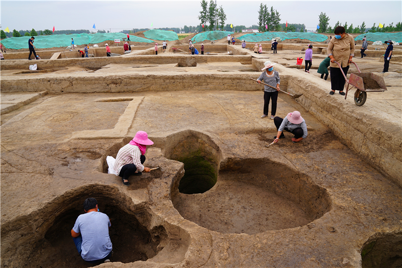 大家首先來到時(shí)莊遺址發(fā)掘現(xiàn)場(chǎng)。該遺址屬于龍山文化遺存,就現(xiàn)有發(fā)掘情況看,遺址規(guī)模宏大、結(jié)構(gòu)獨(dú)特,在全國(guó)范圍也屬罕見,是近年來我國(guó)考古的重要發(fā)現(xiàn)。