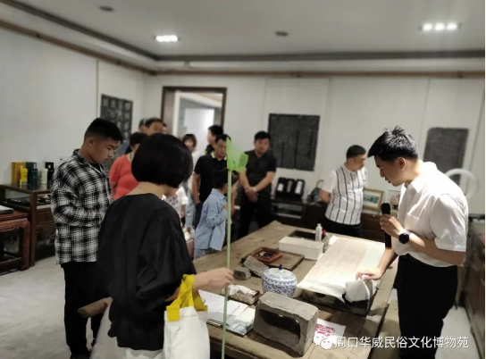 由于當天是禮拜六,孩子們和大人來的特別多,陸陸續續,穿梭不停,其中最大的一個游客團由20多人,孩子們牽著大人的手,游百獅園,參觀華威綜合展廳的木質榨油機和書畫,到華威學堂看拓片技藝,觀看香文化。