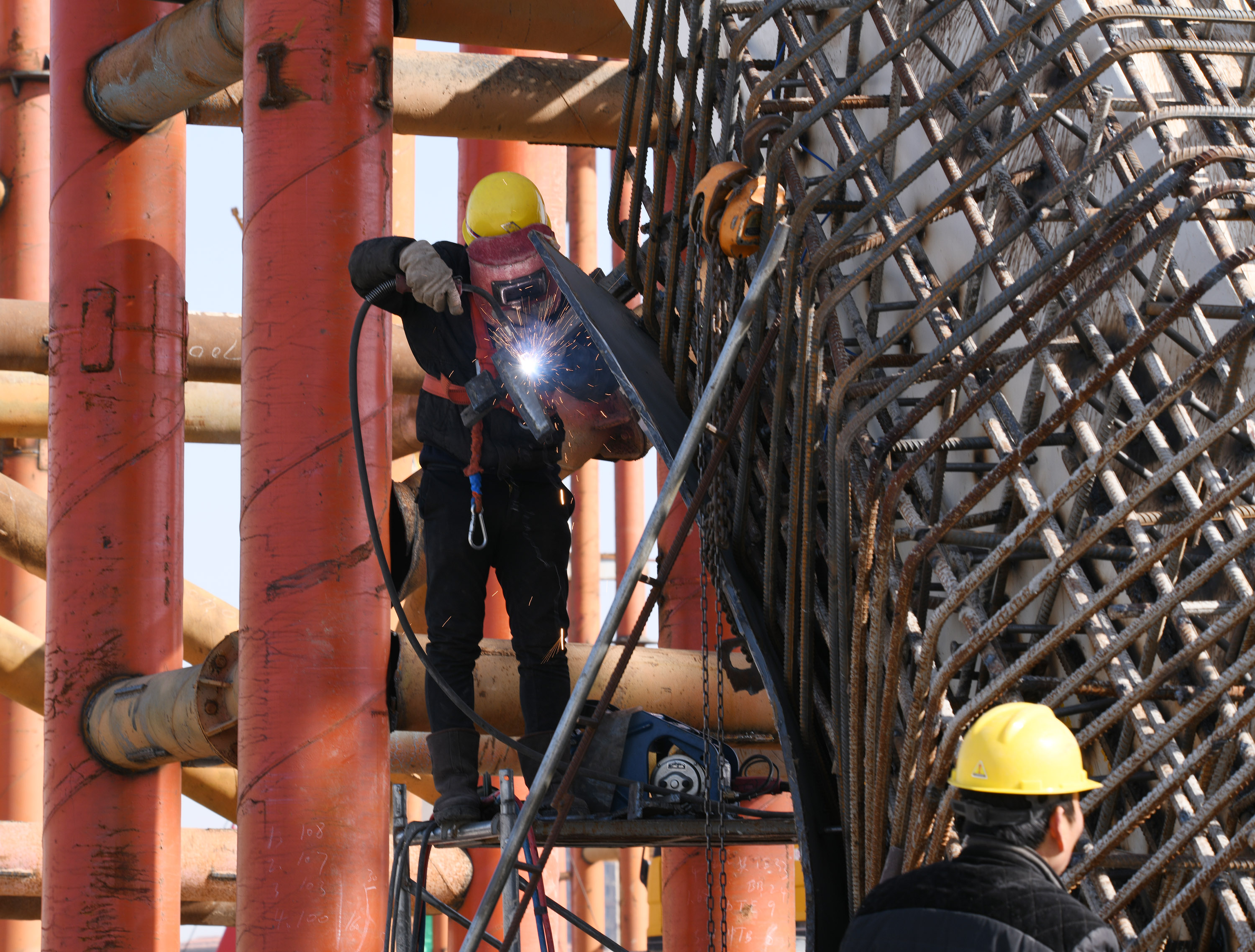 “一輪明月照古城”是中原路跨沙潁河大橋在諸多跨沙潁河大橋中獨居特色的風情。眼下,中原路跨沙潁河大橋合攏之后,橋面建設處于緊鑼密鼓之中,并開始進入安裝“月亮”施工階段。記者在施工工地看到,吊車往來,吊臂上下吊裝著材料,隨著工人們忙碌地焊接、安裝,“月牙”已經乍現。