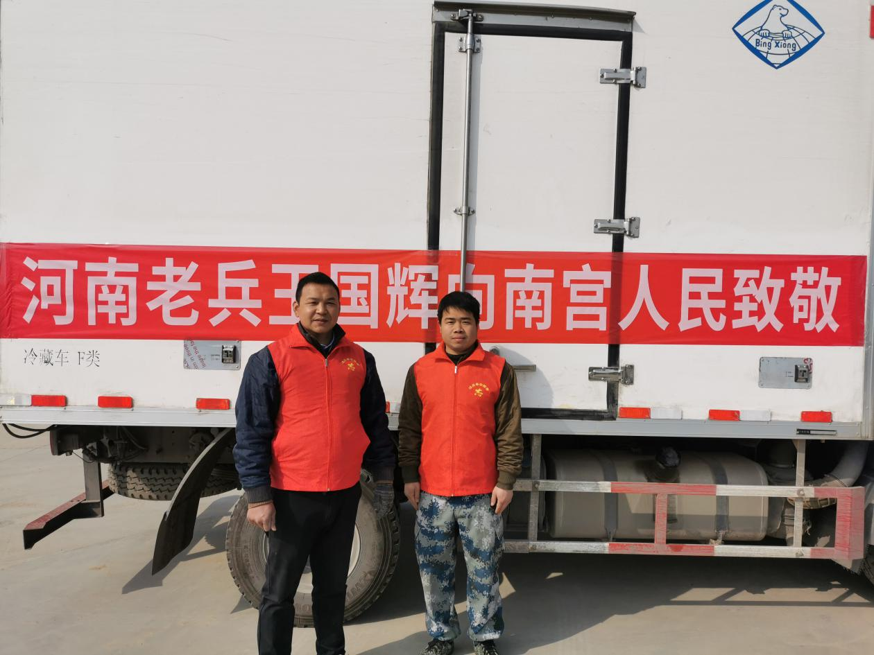 2月4日凌晨6時許,農歷臘月二十三,為漢族傳統節日祭灶節,俗稱小年。王志峰和曾三次“逆行”武漢、一次“逆行”河北南宮的沈丘縣白集鎮田營村黨支部書記、退伍老兵王國輝,再次起航。將將200件愛心棉大衣、400提衛生紙贈送到抗疫一線。