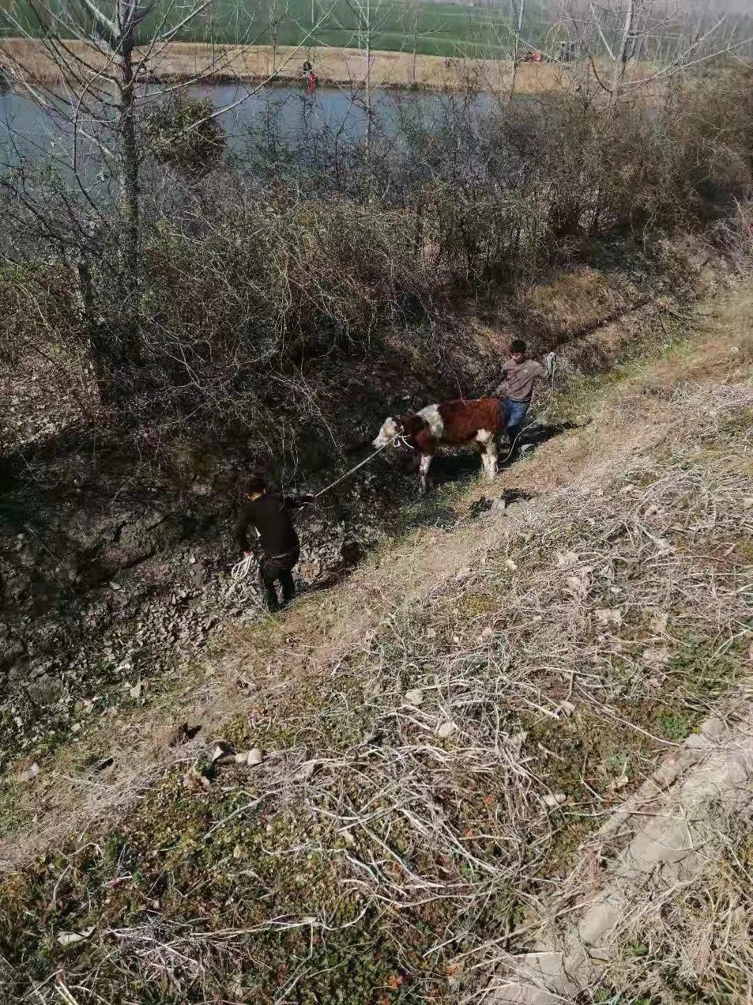接警后,距離事發地點最近的周口高速二大隊項城中隊值班民警迅速趕往現場。民警到達現場后了解到,一輛專業運輸肉牛貨車從北方到南方運輸肉牛,有兩頭牛在行駛途中突然受驚撞破了車上鋼管圍欄跳到了高速公路上,其中一頭又越過中央隔離護欄跑到了對向車道。一輛行駛中轎車躲避不及與牛發生碰撞,導致車輛嚴重損壞,牛被撞死。另一頭沿著高速公路護欄來回折騰著跑,過路車輛紛紛躲避,形勢也十分危險。民警立即指揮來車暫停,招呼司機等人把牛趕下高速公路邊溝,減少危險,然后分段站在護欄處把守,讓有捉牛經驗的車主和司機在邊溝內捉牛。