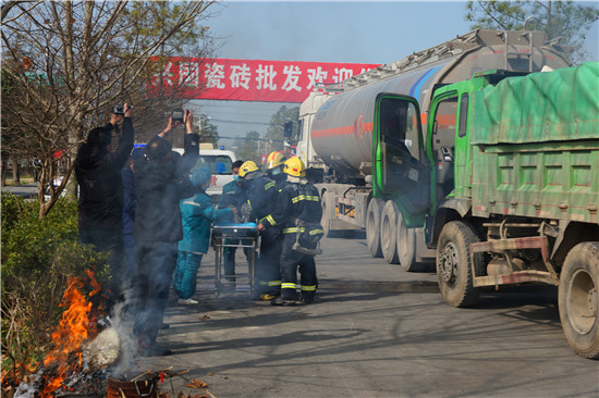 據介紹,通過本次演練,河南省公安交警總隊、周口市公安局、項城市委市政府進一步檢驗了對危險品運輸車事故的應急反應和處置能力及省際危化品交通事故救援處置的科學性、適用性和可操作性,促進了應急搶險工作的規范化、常態化,加強了交警、應急、環保、消防、醫療、交通、搶險救援等各部門協作聯動,提高了應急管控水平,取得了良好的社會效果。②10