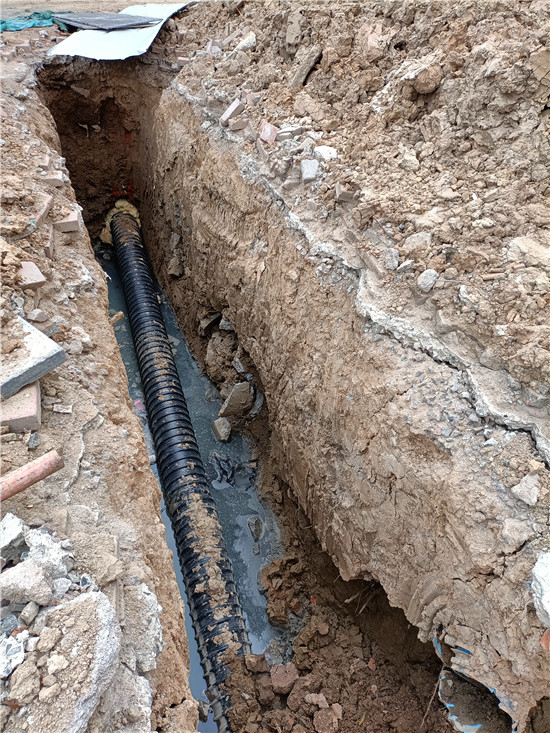 居住在維也納小區(qū)的幾位居民分析說(shuō),維也納大門前邊的污水有可能是對(duì)面施工堵塞下水道后造成污水溢出造成的。記者又來(lái)到維也納小區(qū)對(duì)面的馨蓮茗苑小區(qū)門前,那里路面沒有積水,正在進(jìn)行的市政工程施工工地也沒有看到有大量污水流淌,在馨蓮茗苑大門東邊不遠(yuǎn)處有一條挖開的管道溝槽,溝槽的底部有少量污水。剛下班的一名工人師傅說(shuō),現(xiàn)在他們正在修建新的下水道,管道建好還得一段時(shí)間,舊的排水管道還在使用,至于路南邊的污水與正在施工的工程有沒有聯(lián)系,他們也說(shuō)不清楚。