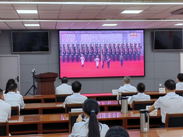 收看過程中,大家心情澎湃,感慨萬千?,F場氣氛莊重而熱烈,大家全神貫注,聆聽習近平總書記重要講話,滿懷激動與自豪的觀看閱兵儀式的全過程。當威武雄壯的三軍儀仗隊邁著鏗鏘有力的步伐率先通過天安門廣場時,當一個個裝備方隊展示著彰顯國家實力的現代化尖端武器時,當戰機梯隊以恢宏陣勢呼嘯掠過蒼穹時,大家內心迸發出由衷的贊嘆,為祖國日益強盛而自豪。