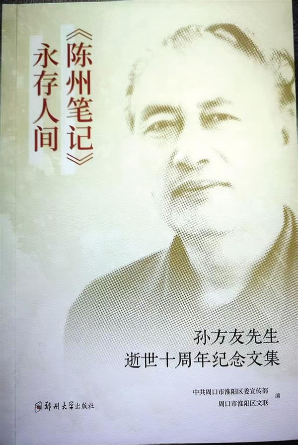 淮陽區(qū)文聯(lián)主席傅世楨說,這本紀念文集既展現(xiàn)了孫方友先生苦心孤詣的文學成就,又輯錄了研究先生文學成就的文章,還收錄了文學藝術界追思先生的詩詞楹聯(lián)和深情文章,以及社會各界悼念活動的新聞報道,將激勵淮陽文藝工作者奮勇前行。