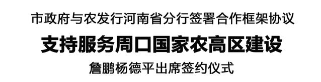 楊德平對周口市委、市政府長期以來給予農發行河南省分行的關心與支持表示感謝。他表示,農發行河南省分行將依托“糧食銀行”“農地銀行”“水利銀行”“綠色銀行”品牌優勢,持續為周口國家農高區發展提供優質金融服務和堅實金融支撐,共同打造政銀合作服務鄉村振興的“周口樣板”。①7