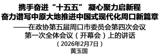 在“十四五”勝利收官、“十五五”開局起步的關鍵時期,政協第五屆周口市委員會第四次會議隆重開幕了。這是全市人民政治生活中的一件大事,是廣納群言、廣集眾智、共謀發展的一次盛會。在此,我代表中共周口市委,向大會的召開表示熱烈祝賀,向全體政協委員和與會同志致以誠摯問候!