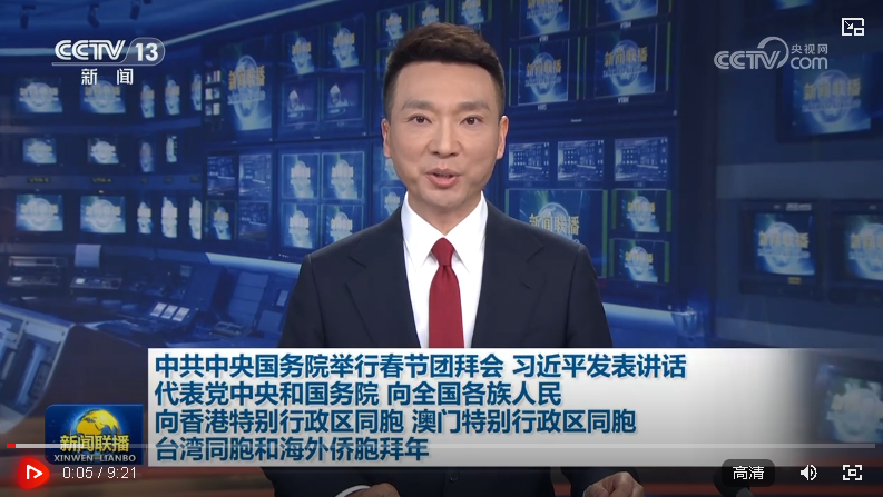 代表黨中央和國務院,向全國各族人民,向香港特別行政區同胞、澳門特別行政區同胞、臺灣同胞和海外僑胞拜年