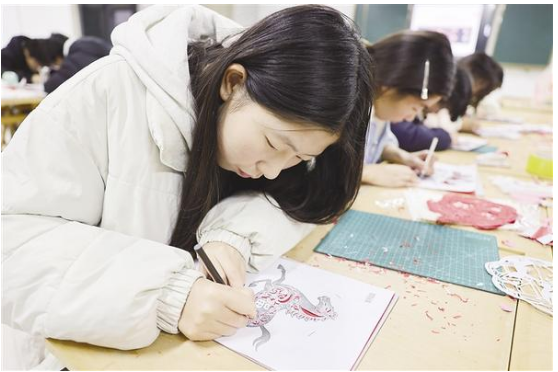 學生用刻刀認真創作剪紙作品。12月25日,淮陽紅旗中學開展“巧手剪紙迎新年”活動。該校剪紙社團的學生在老師指導下,手持剪刀、巧運刻刀,精心創作以生肖“馬”為主題的剪紙作品。