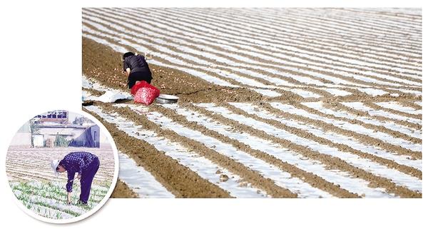 10月14日,淮陽區瓦房集村的菜農,抓住連陰轉睛的有利時機,搶種大蒜。